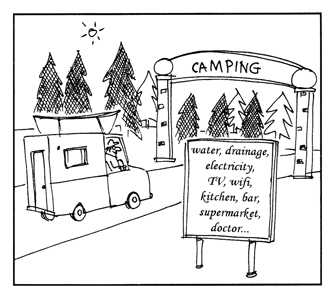 No camping, no swimming, no hiking, no relaxing, no fishing, no hunting, no riding, no sightseeing - Camping, water, drainage, electricity, TV, wifi, kitchen, bar, supermarket, doctor